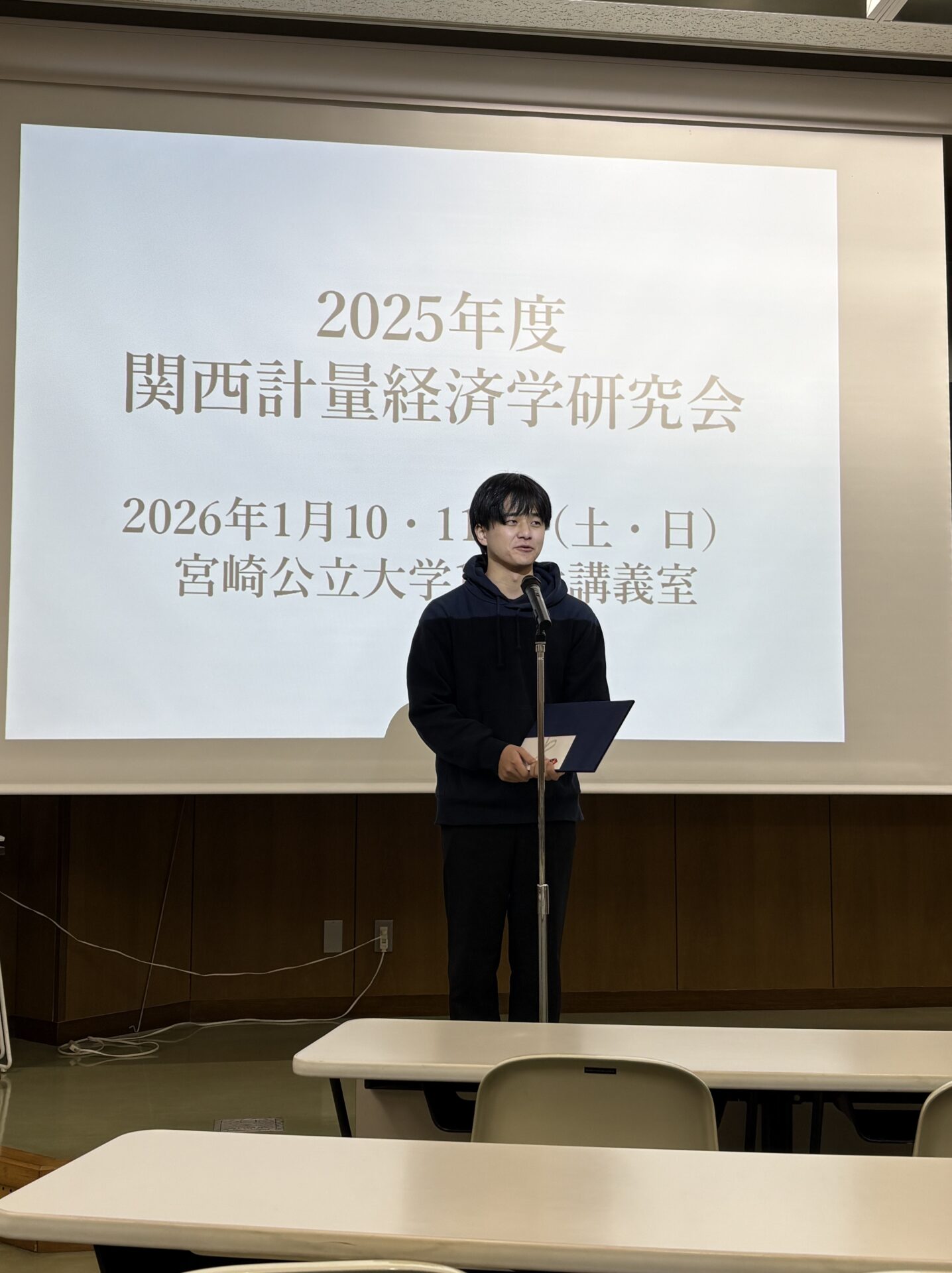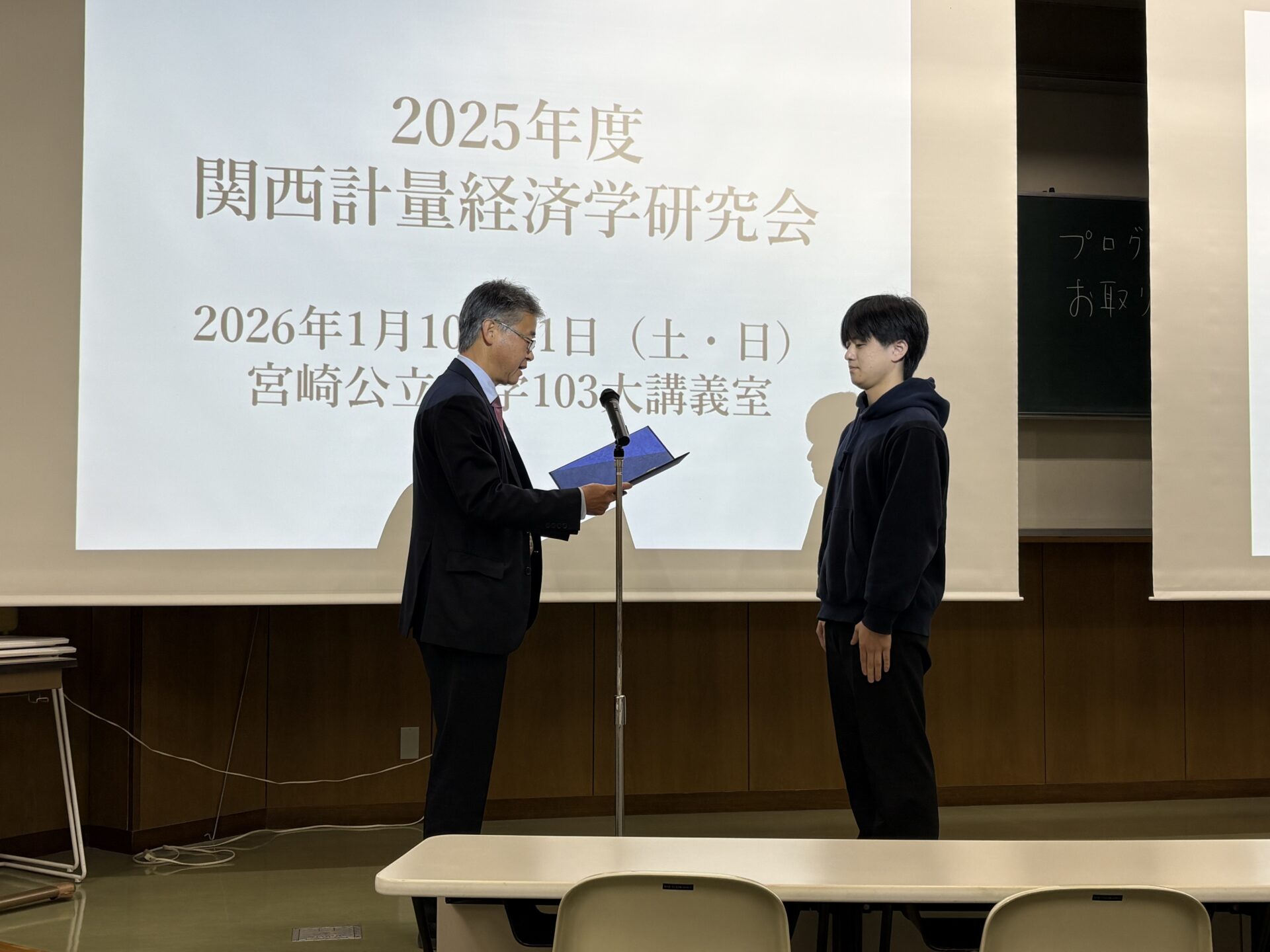 ソーシャル・データサイエンス研究科博士前期課程1年の宮崎隆之介さん(植松研究室)が、関西計量経済学研究会にて優秀報告賞を受賞しました